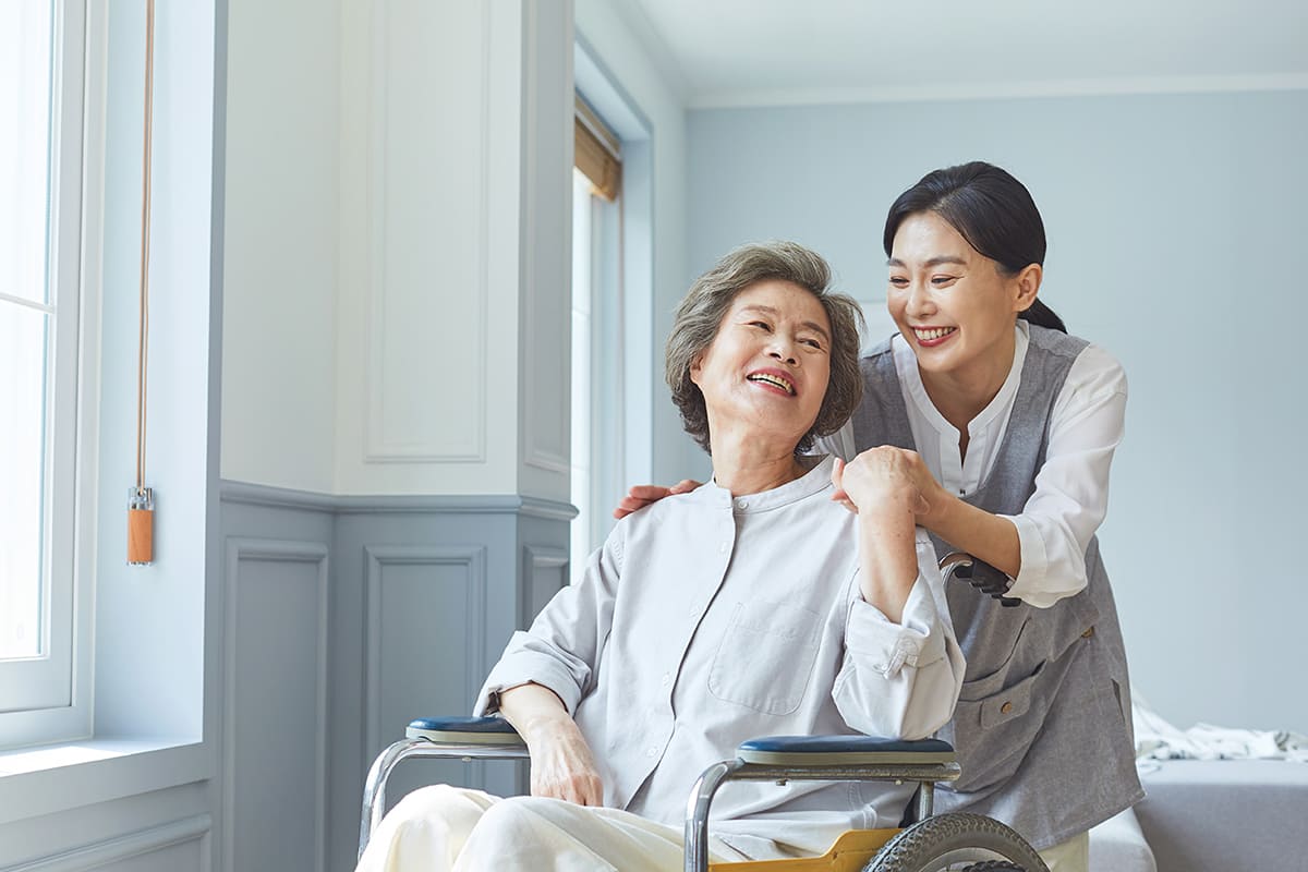 요양 보호사가 노인 가정을 방문해 신체활동(씻기, 옷 입기, 식사 등)과 일상생활(청소, 세탁, 간단한 집안일 등)을 지원합니다.